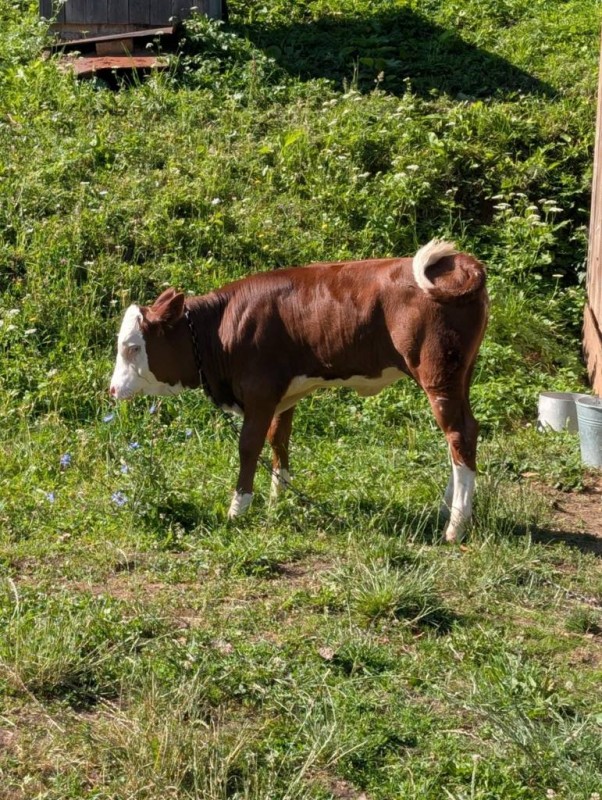 Продається теличка на тримання, від доброї корови, п'є сама з відра, може пасти на прив'язі.