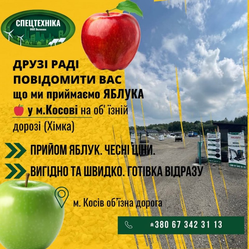Приймаємо яблука м. Косів обʼїзна дорога.